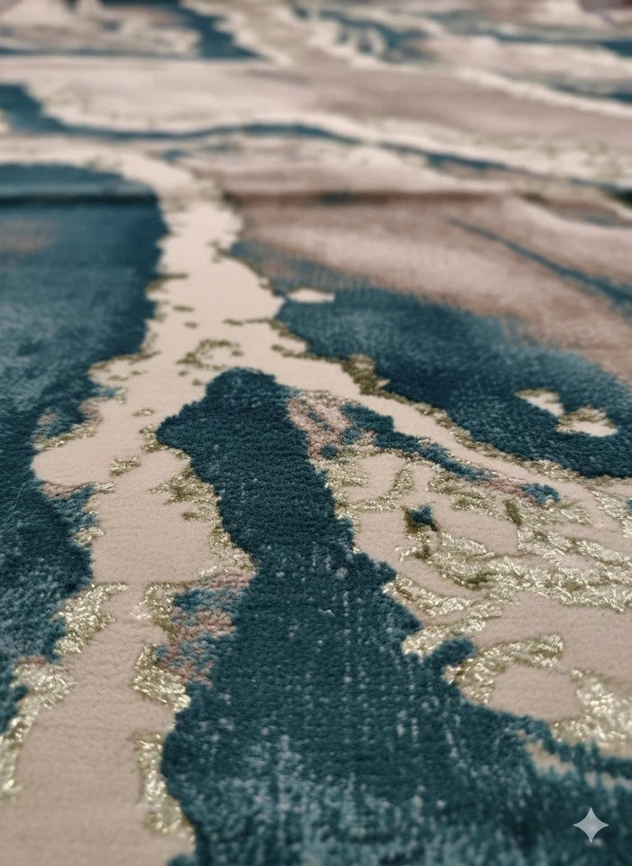 Experience opulence with this velvety-soft Green Vizion, expertly crafted with a hand-carved, chunky border and a luxurious Polyester blend.