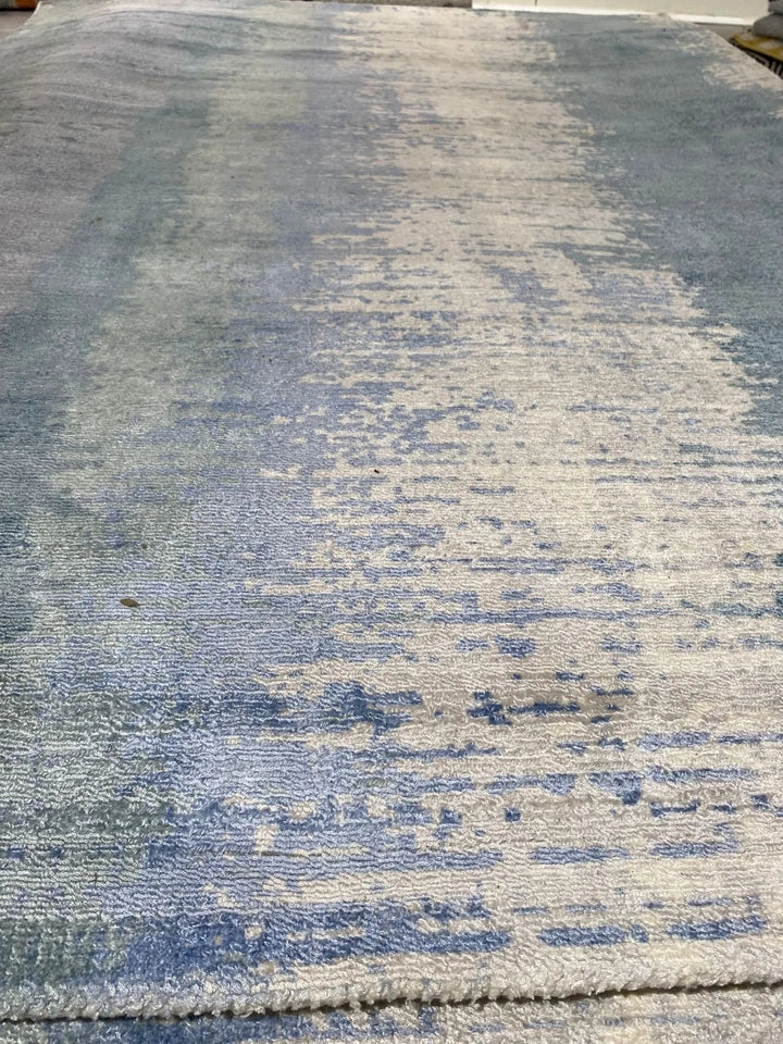A luxurious and unique hand-woven rug with an exquisite sheen and abstract design.